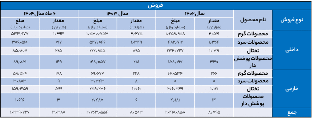 به‌طور کلی، بررسی ساختار فروش داخلی و صادراتی فولاد مبارکه بیانگر تمرکز بر محصولات استراتژیک با تقاضای پایدار است. توازن میان فروش داخلی و صادراتی در کنار تنوع سبد محصولات، موجب شده تا این شرکت جایگاه خود را به‌عنوان بزرگ‌ترین و سودآورترین تولیدکننده فولاد تخت در منطقه MENA تثبیت کند.