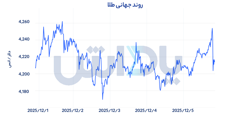 روند قیمت طلا در هفته منتهی به 5 دسامبر