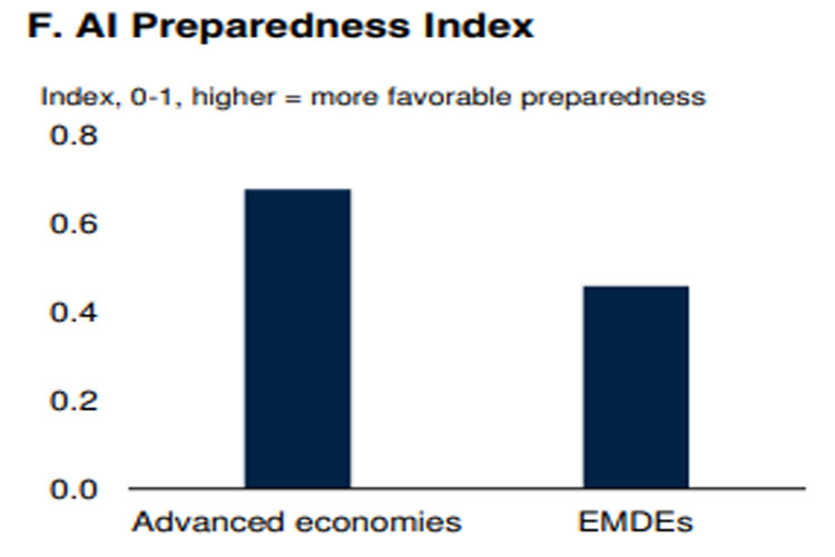 ظهور هوش مصنوعی (AI) پتانسیل عظیمی برای دگرگونی بهرهوری دارد. IMF اشاره میکند که شرکتهای AI هماکنون سهم قابل توجهی از ارزش بازار را در اختیار دارند و محرک اصلی مخارج سرمایهای شرکتی هستند. بانک جهانی نیز تخمین میزند که AIمیتواند رشد بهرهوری ایالات متحده را حدود ۰.۷ واحد درصد در سال افزایش دهد و در صورت انتشار گسترده، رشد بهرهوری جهانی را تا ۰.۵ واحد درصد بالا ببرد و از بحران ها پیشگیری کند.