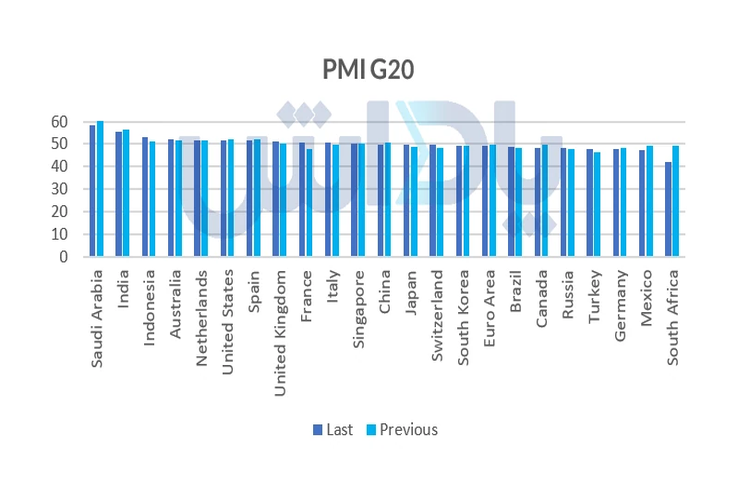 در حالی که شاخص PMI تولید اغلب کشورها (به‌ویژه در اروپا و چین) زیر سطح ۵۰ و در قلمرو انقباض باقی مانده، شاخص PMI خدمات در بسیاری از اقتصادها بالای ۵۰ و در حال گسترش است. این الگو توضیح می‌دهد که چرا تقاضای صنعتی برای کالاهایی مانند مس و نفت ضعیف است، در حالی که تورم خدمات به‌عنوان یک چالش پایدار مطرح می‌باشد.