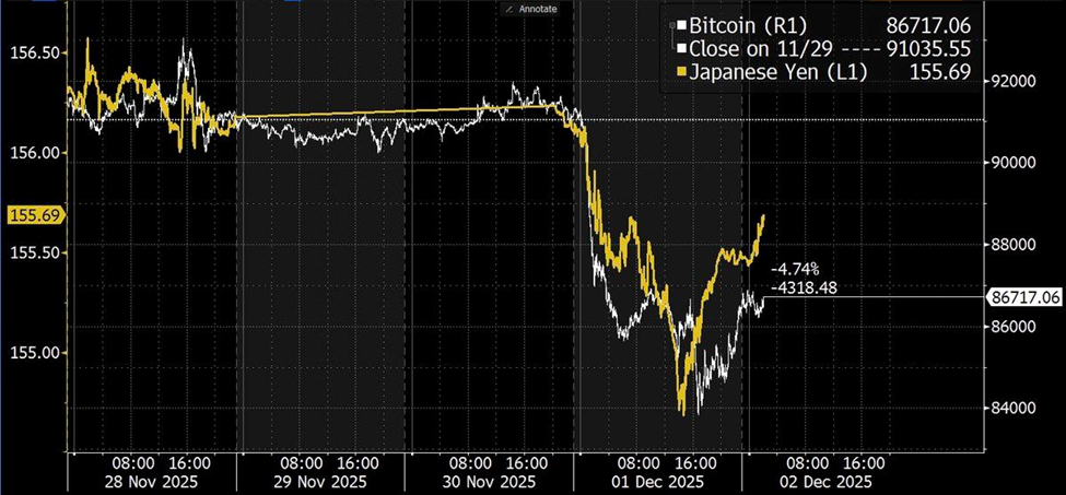 این رویداد نشان داد که همبستگی میان ارزش ین و داراییهای ریسکی افزایش یافته است. بر خلاف گذشته که بیتکوین گاهی به عنوان پوشش ریسک عمل میکرد، در این مقطع دقیقاً همسو با داراییهای ریسکی سنتی رفتار کرد و با کاهش نقدینگی جهانی، دچار اصلاح قیمت شد.