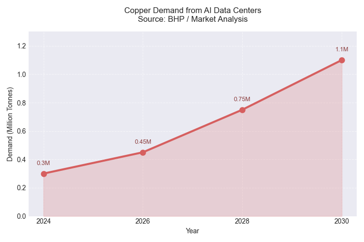نمودار 1 – پیش بینی تقاضای مس برای مراکز پشتیبان هوش مصنوعی تا 2030